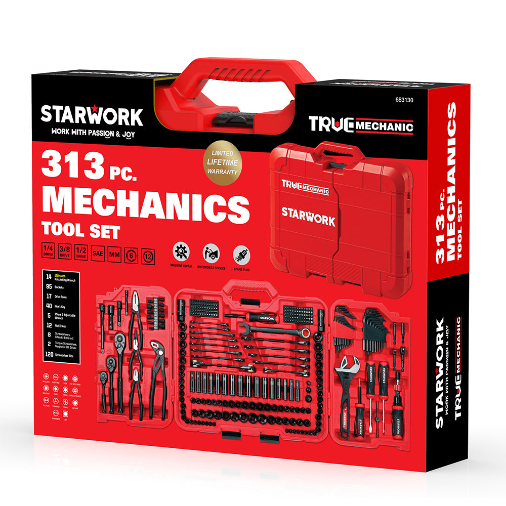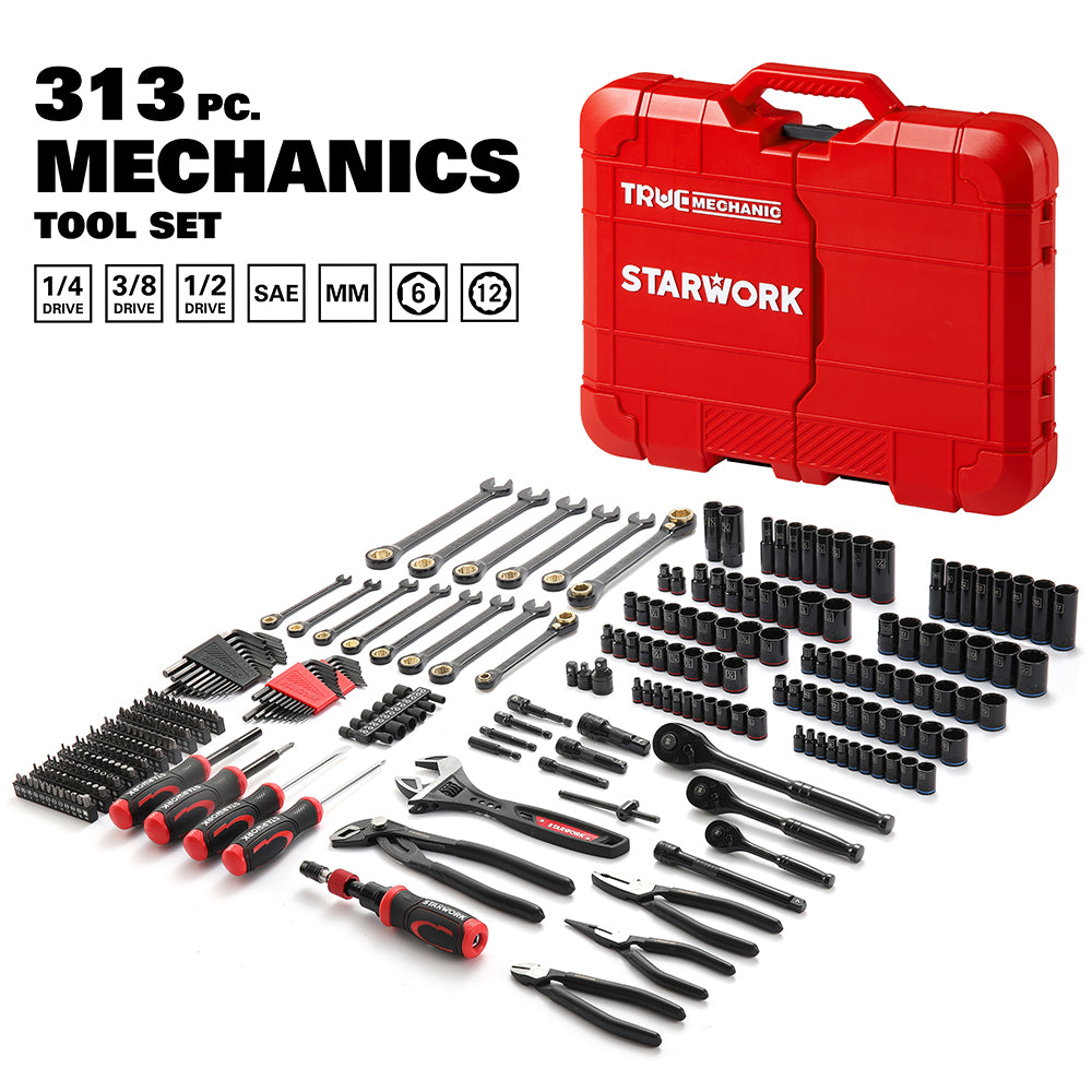 STARWORK TRUE MECHANIC™ 313-Piece Mechanics Tool Set and Socket Set, Professional SAE/Metric